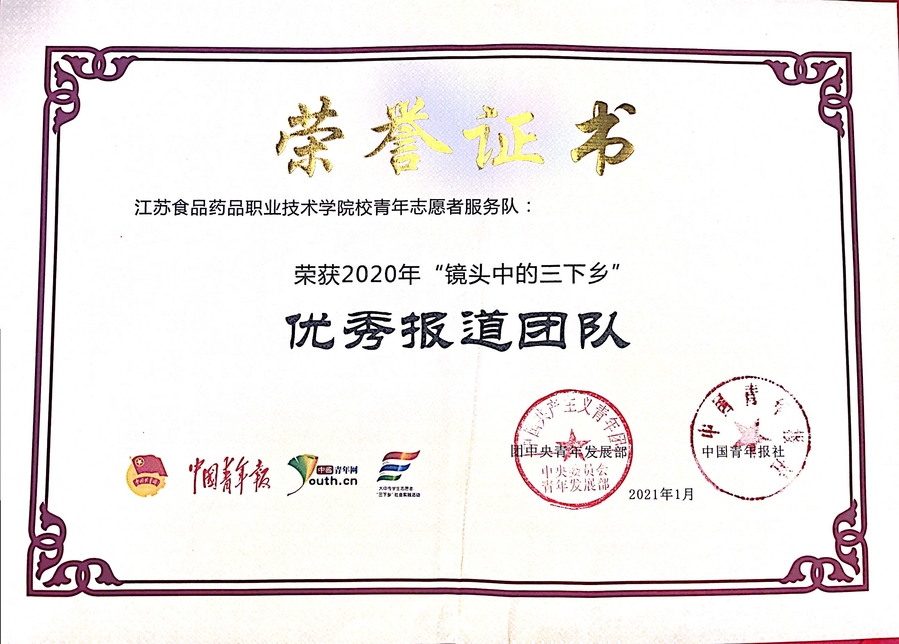 由团中央青年发展部、中国青年报社、中国青年网联合开展2020年全国大中专学生暑期“三下乡”社会实践“镜头中的三下乡”活动中,乐竞获得“优秀报道团队”称号。