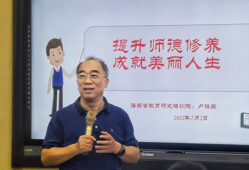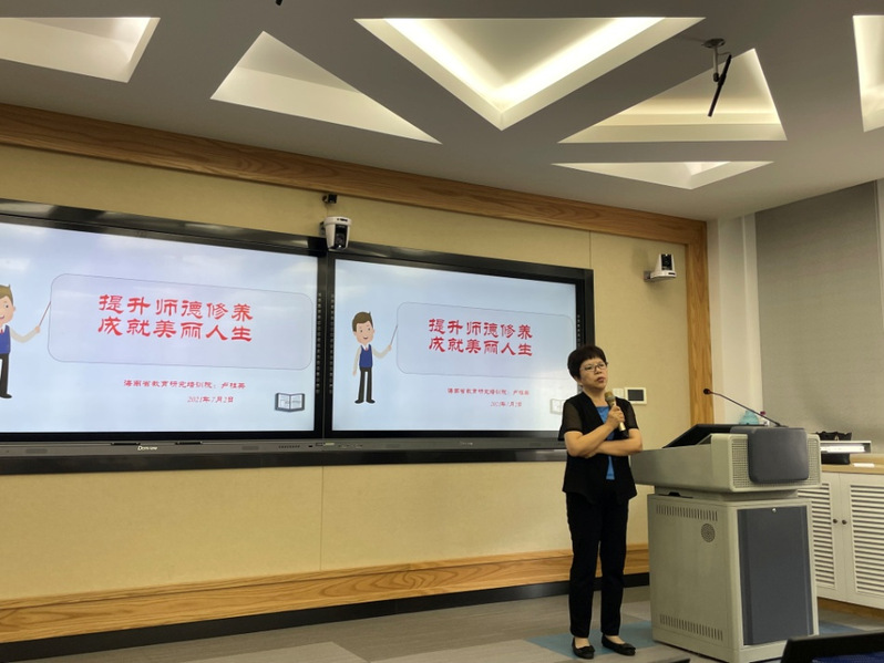 ▲海南省教育研究培训院副院长卢桂英作专题讲座