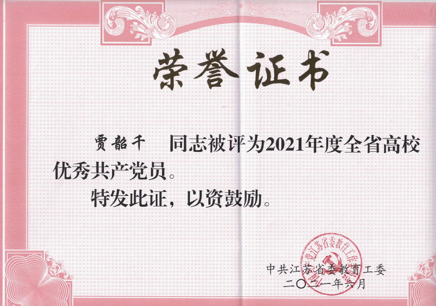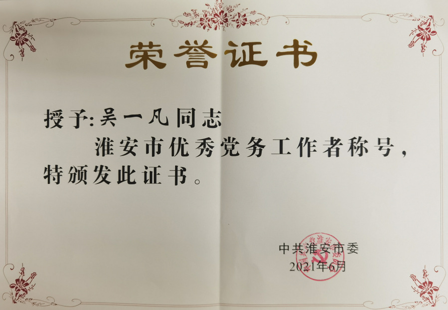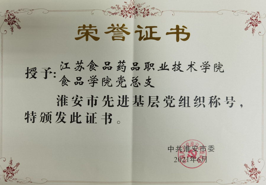 近日,《省委教育工委关于表彰2021年度全省高校优秀共产党员、优秀党务工作者和先进基层党组织的决定》(苏委教组〔2021〕25号)和《中共淮安市委关于表彰优秀共产党员优秀党务工作者先进基层党组织的决定》(淮委〔2021〕81号)文件下发,乐竞贾韶千同志被表彰为2021年度江苏高校优秀共产党员,吴一凡同志被授予淮安市优秀党务工作者,张二飞同志被授予淮安市优秀共产党员,食品学院党总支被授予淮安市先进基层党组织。