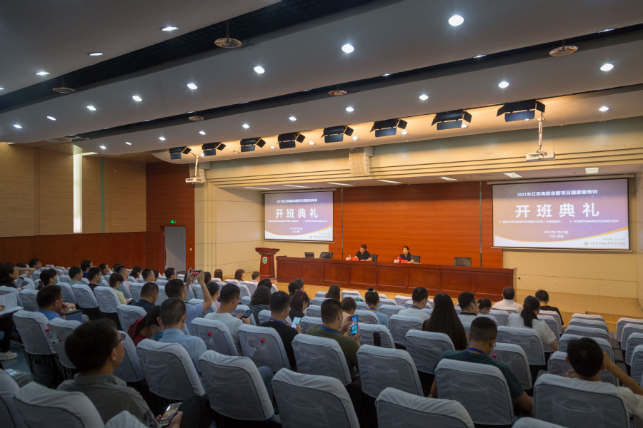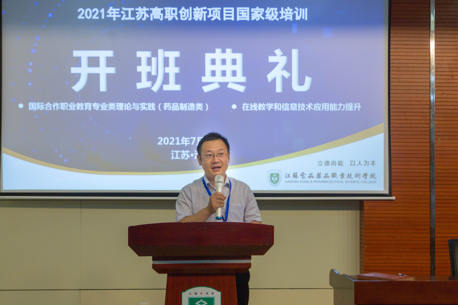 7月19日上午,乐竞承办的2021年江苏高职国培项目(2020年计划,制药技术专业群职业教育理论与实践国际合作、高职教师在线教学和信息技术应用能力提升)在乐竞图书馆图文报告厅举行开班典礼,来自江苏省高职院校的76名学员参加培训。