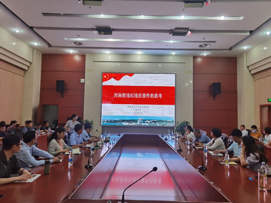 田卫国主任围绕高校违纪违法特点、案件发生的原因等对近年来发生在高校教职工的典型违纪违法案件进行剖析,同时对如何加强高校违纪违法案件防范提出建议,警示各位同志要贯彻落实全面从严治党各项要求,完善并执行“三重一大”制度,提高制度执行力,牢记使命责任、严明纪律规矩,要从案件中吸取教训、高度警醒、见微知著、防微杜渐。
