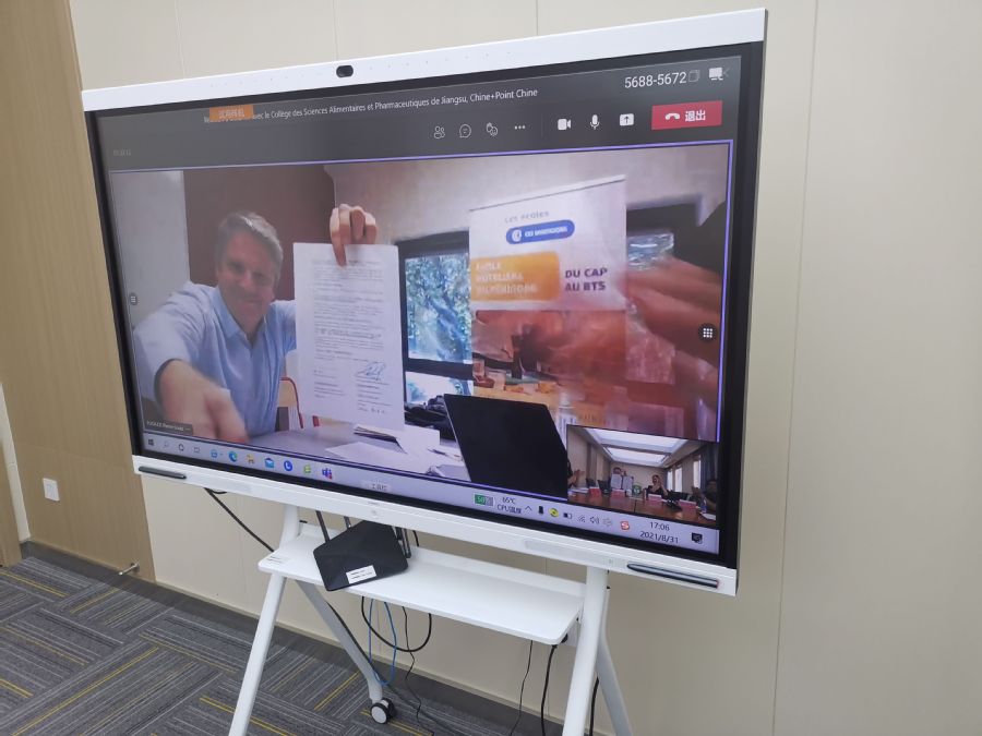 冯锋在致辞中介绍了学校的基本情况、办学特色和目前的国际化办学情况,表达了对两校在签署合作备忘录的基础上,开展国际化人才培养、学术科研合作、师生交流互访等方面的期望,并诚挚邀请法国多尔多涅省工商会和法国品阁高等厨艺学院代表在疫情得到有效控制后来乐竞访问交流。