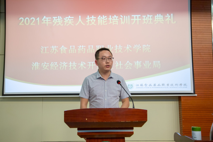 为提高特殊人群劳动技能,创造就业条件,进一步拓宽就业渠道,推动特殊人群事业持续、快速、健康发展。9月3日下午,淮安市经济技术开发区2021年残疾人职业技能培训在乐竞图书馆多功能会议厅顺利开班,本次培训由淮安市经济技术开发区社会事业局主办,乐竞承办。市经济技术开发区社会事业局副局长、区残联理事长刘苏红,市经济技术开发区残联副理事长陈兆清,乐竞副校长翟玮玮参加开班典礼。