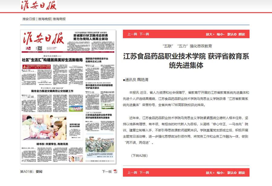 近日,省人力资源和社会保障厅、省教育厅开展的江苏省教育系统先进集体和先进个人评选结果揭晓,乐竞马克思主义学院获得“江苏省教育系统先进集体”荣誉称号,全省共有17所高职院校获此殊荣。