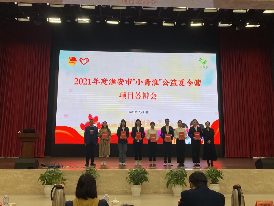 为深入学习贯彻习近平总书记关于志愿服务的一系列重要指示精神,引导广大青年弘扬“奉献、友爱、互助、进步”的志愿精神,激励广大淮安青年志愿者参与“小青淮”公益夏令营,设计高质量、高标准的“小青淮”课程,有效解决留守儿童暑期看护难等问题,10月21日下午,由团市委、市文明办、市民政局、市关工委、市青少年发展基金会、市学联决定开展2021年度淮安市“小青淮”公益夏令营评选推荐答辩会于市移动公司8楼大会议室举办,经过PPT汇报、现场答辩等激烈角逐,我院“小青淮”夏令营活动从19支队伍中脱颖而出,荣获淮安市优秀志愿服务项目。