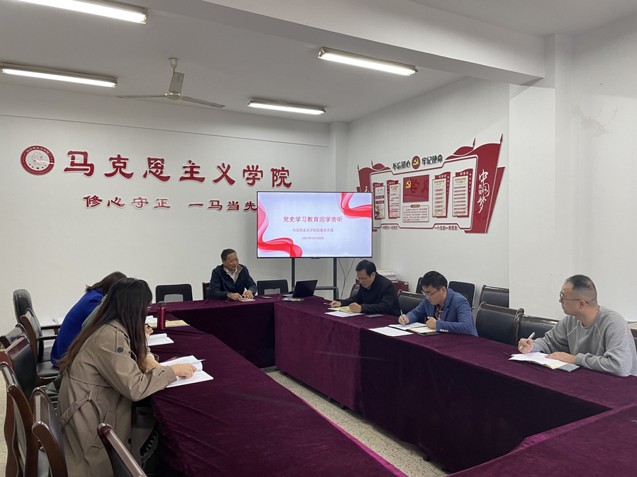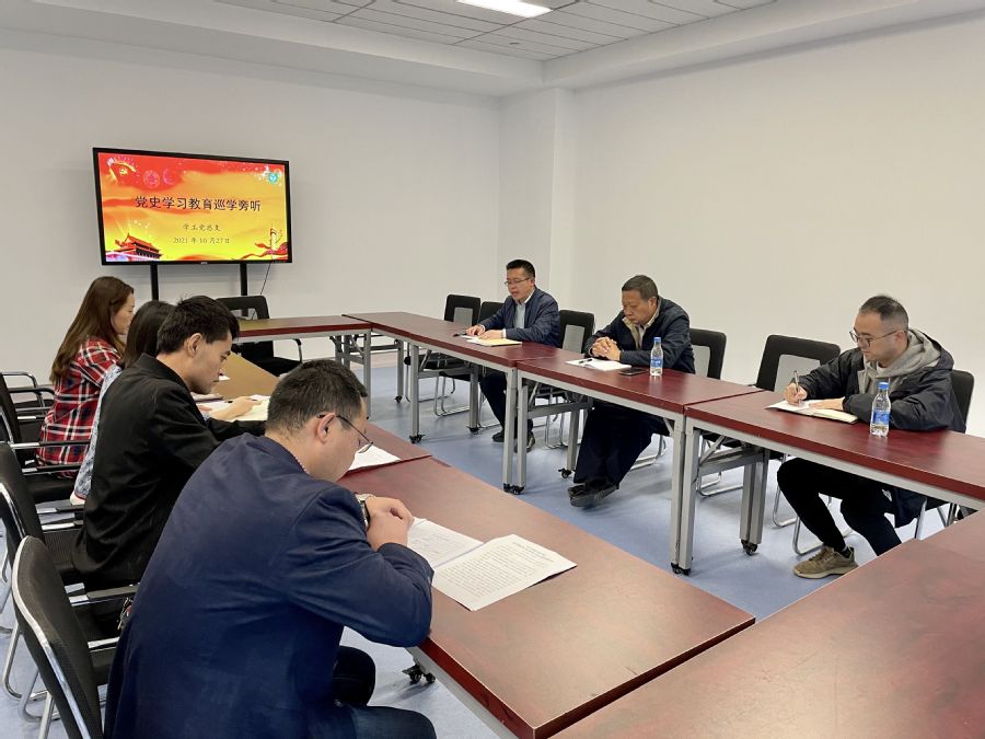戴光顺还于25—27日期间听取了马克思主义学院直属党支部书记赵慧、基础教学部党总支书记刘晓娟和学工党总支书记朱劲松对各部门“两在两同”建新功、“学党史·办实事”相关工作的汇报,对各总支学习情况进行了巡学旁听。戴光顺充分肯定了各党总支、直属党支部的党史学习成效和各部门办实事成绩。他指出要继续扎实认真开展“两在两同” 建新功、“学党史 办实事”工作,丰富学习方法,深入师生调研,多角度全方位更好服务广大师生。
