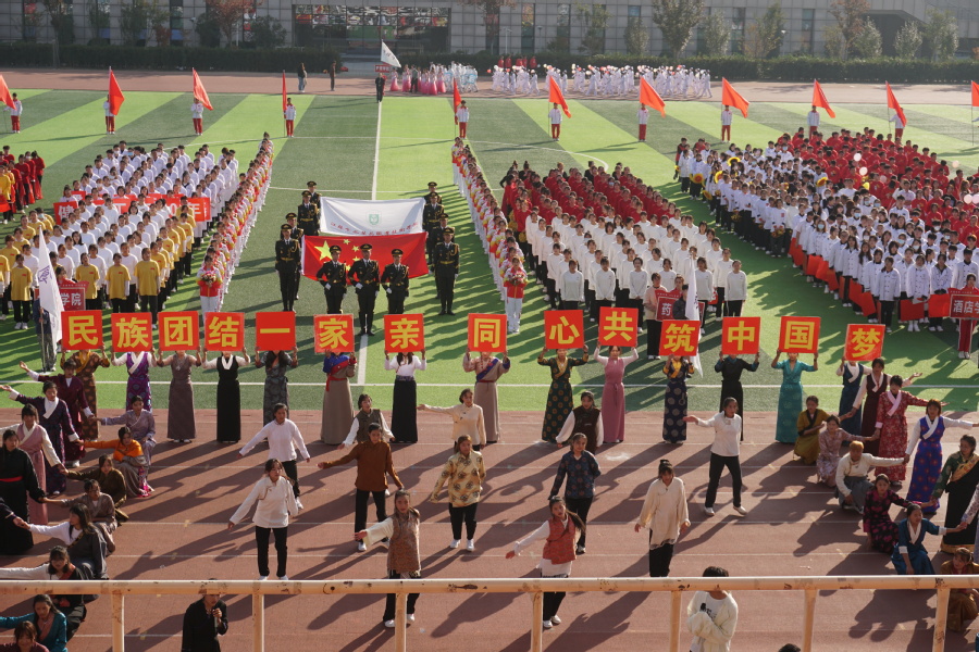 身着多彩民族服饰是民族学院,一曲《幸福拉萨》唱出了大家的民族团结精神和爱国情怀,顽强拼搏是他们永恒的信念,同心协力是他们永远的默契,永争第一是他们不变的追求。