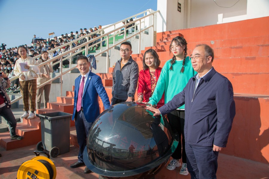校长冯锋在致辞中指出,体育强则中国强,国运兴则体育兴,发展体育事业为中华民族伟大复兴提供了凝心聚气的强大精神力量。希望大家养成体育锻炼的习惯,主动走向操场,在体育锻炼中享受乐趣、增强体质、健全人格、锤炼意志,成为一名德智体美劳全面发展的年轻人。党委书记陶书中宣布为期两天的运动会拉开帷幕。陶书中、冯锋与裁判员代表、运动员代表、留学生代表共同启动水晶球。