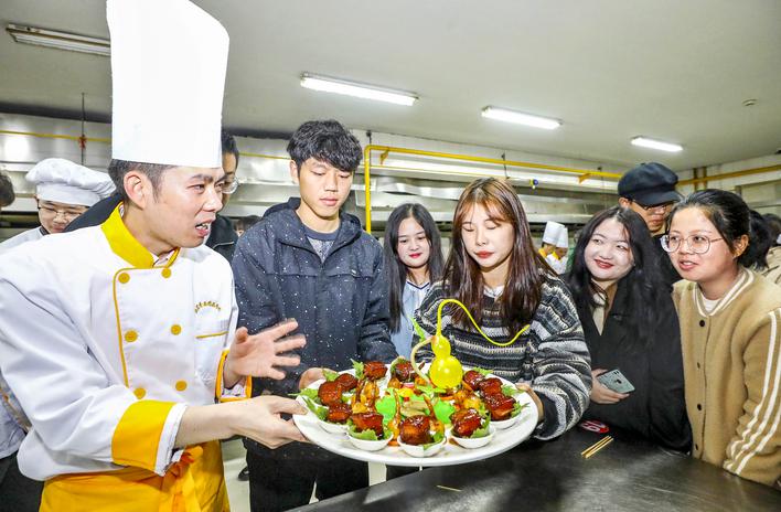 身为中国烹饪大师、中式烹调高级技师、中式面点高级技师、江苏淮扬菜烹饪学院执行院长的丁玉勇,作为江苏省高校“青蓝工程”中青年学术带头人、江苏省侨联中餐文化海外推广使者,曾受中国文化部委托带队赴约旦展示“行走的年夜饭”,赴瑞士、澳大利亚、日本等国家进行烹饪技术交流。在活动现场,他亲自制作了淮扬菜品鸡粥皮肚、清汤鱼圆供学生们品尝。“淮安入选‘世界美食之都’,我们既感到骄傲也感到了新的挑战和压力。在传承好淮扬菜文化的同时,我们还要培养更多淮扬菜烹饪人才,为‘世界美食之都’淮安美食发展储备更多后备力量。”丁玉勇表示。