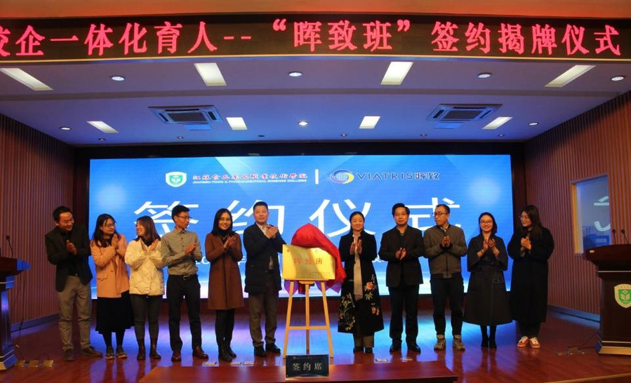 为更好适应高等职业技术教育事业发展的要求,推进校企一体化育人机制,共享资源、共谋发展,12月5日,乐竞与晖致医药有限公司签约联合共建“晖致班”,副校长翟玮玮、晖致医药有限公司零售事业部江苏大区经理刘烨等一行共同出席签约揭牌仪式。