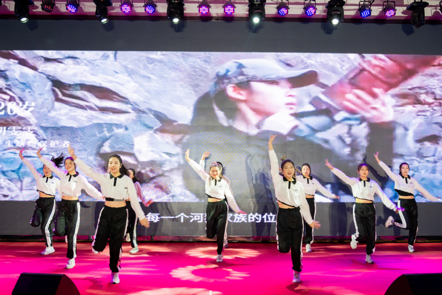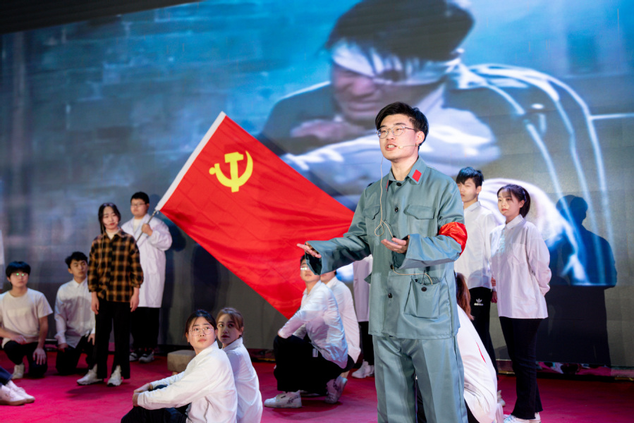活动在破晓乐队《最美的太阳》深情演唱中拉开序幕,大学生艺术团的同学们带来了活力四射的现代舞《奔跑的青春》;歌曲《再一次出发》大气恢弘而细腻动人,将改革开放以来一幕幕壮丽的画面展现在我们眼前;古典舞《华夏》、蒙族舞《白马》、锅庄舞《青春踢踏》、功夫秀《旗开得胜》充分展示了乐竞学生第二课堂多元化的艺术教育成果;歌舞《热爱105度的你》《fire》青春洋溢、朝气蓬勃;舞台剧《中国的保尔——吴运铎》将“把一切献给党”的铿锵誓言穿越时空回响在我们耳畔。