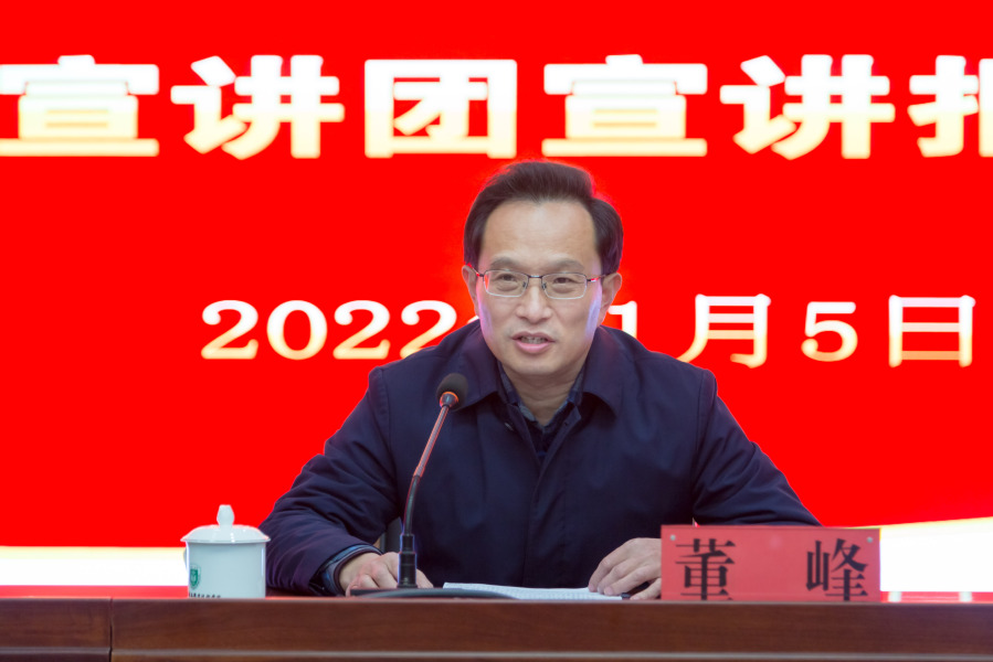 董峰主要从“决议起草过程体现全党意志、全会作出决议意义重大、‘32个字’彰显时代光芒、‘两个确立’是学习贯彻重中之重、‘13个方面’历史性成就举世瞩目、‘十个坚持’必须倍加珍惜、淮安逐梦新征程任重道远”等方面,为全体与会同志深入阐释了党的十九届六中全会精神,将全会精神与省委“强富美高”新江苏建设、市委“长三角北部现代化中心城市”建设等要求相结合,提出应从党百年奋斗的历史中汲取智慧力量,推动学校各项事业高质量发展。