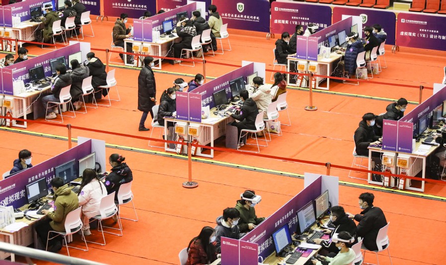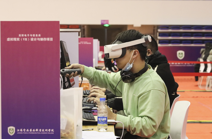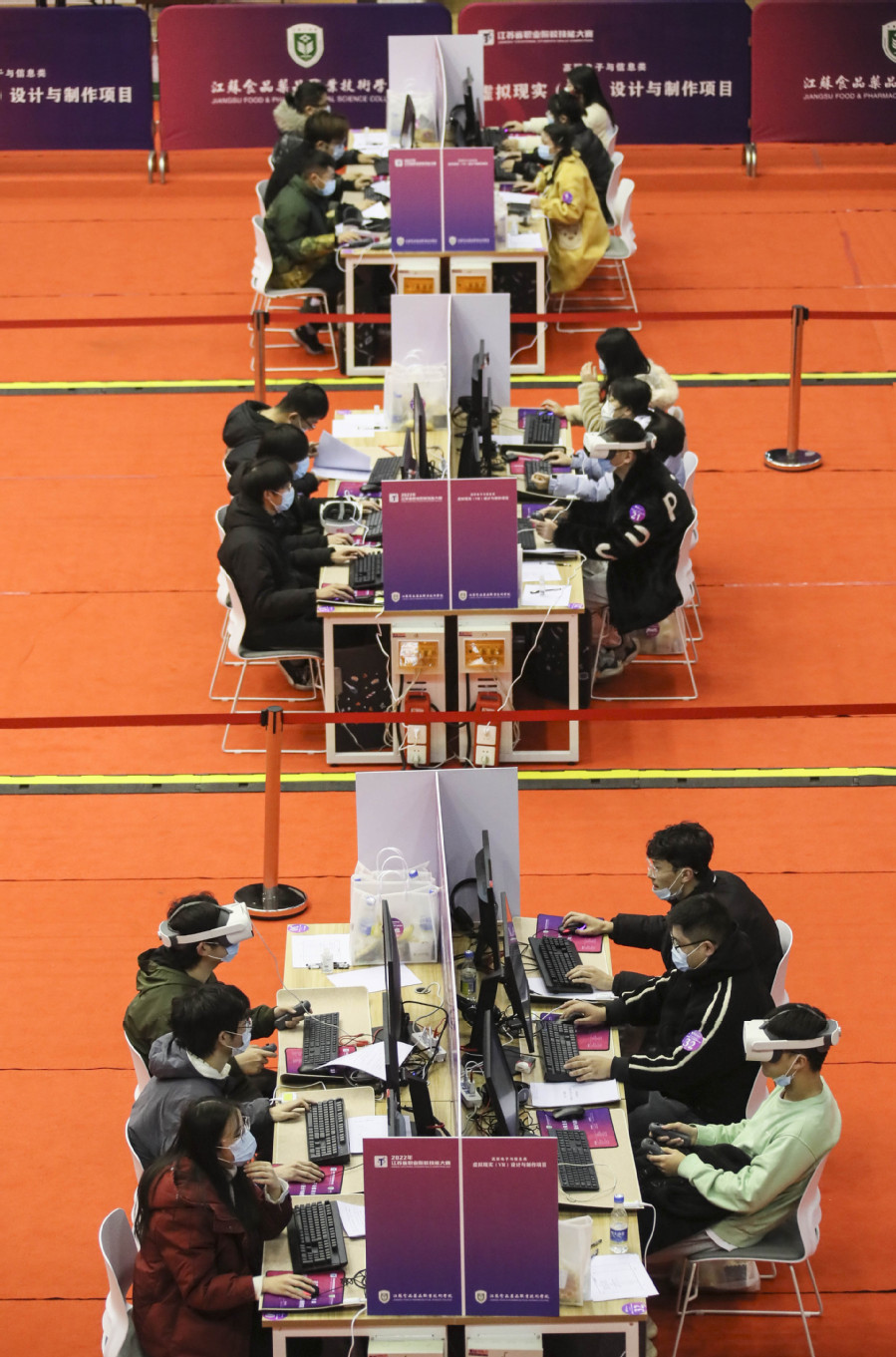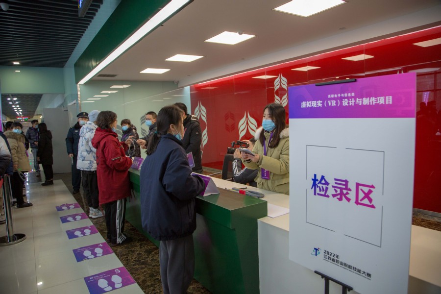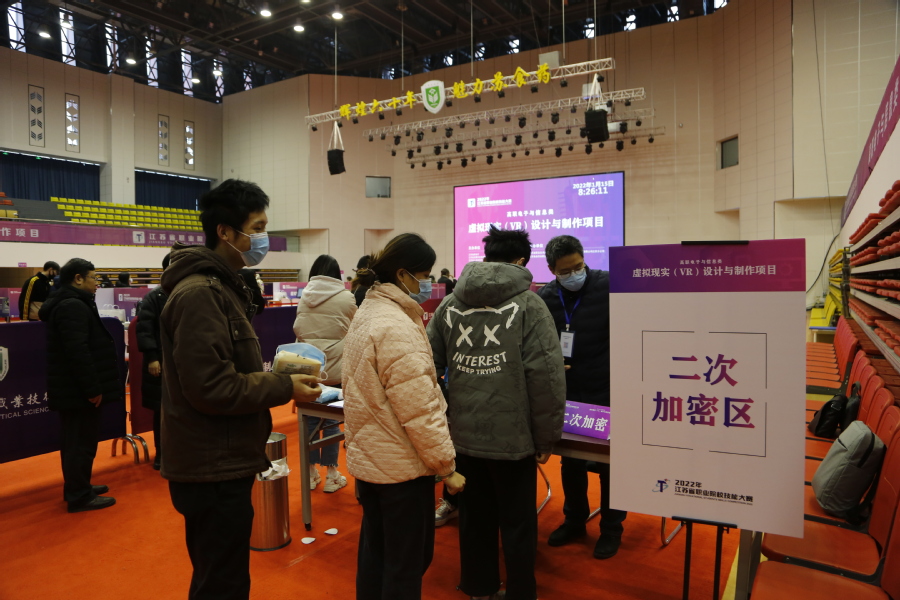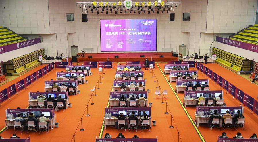 1月15日,2022年江苏省职业院校技能大赛高职电子与信息类虚拟现实(VR)设计与制作项目首次在乐竞大学生活动中心火热开赛。该赛项由由江苏省教育厅等14个部门共同主办,江苏省职业技术教育学会和乐竞承办。来自全省33所高校的选手围绕虚拟现实技术展开激烈角逐。