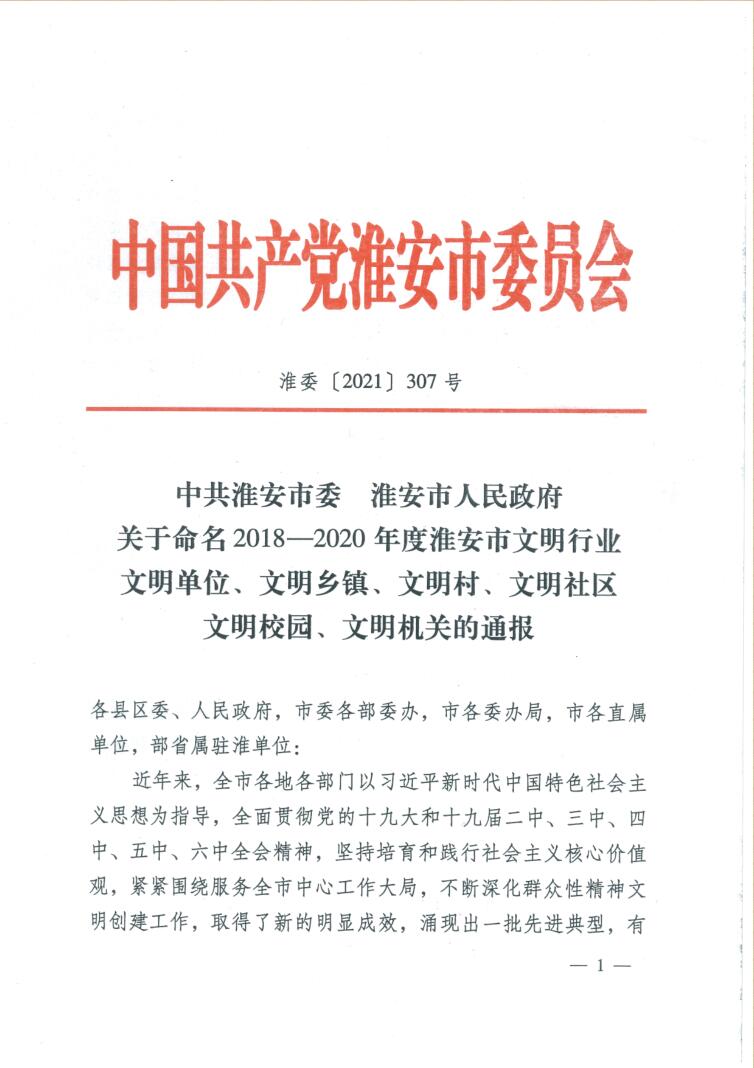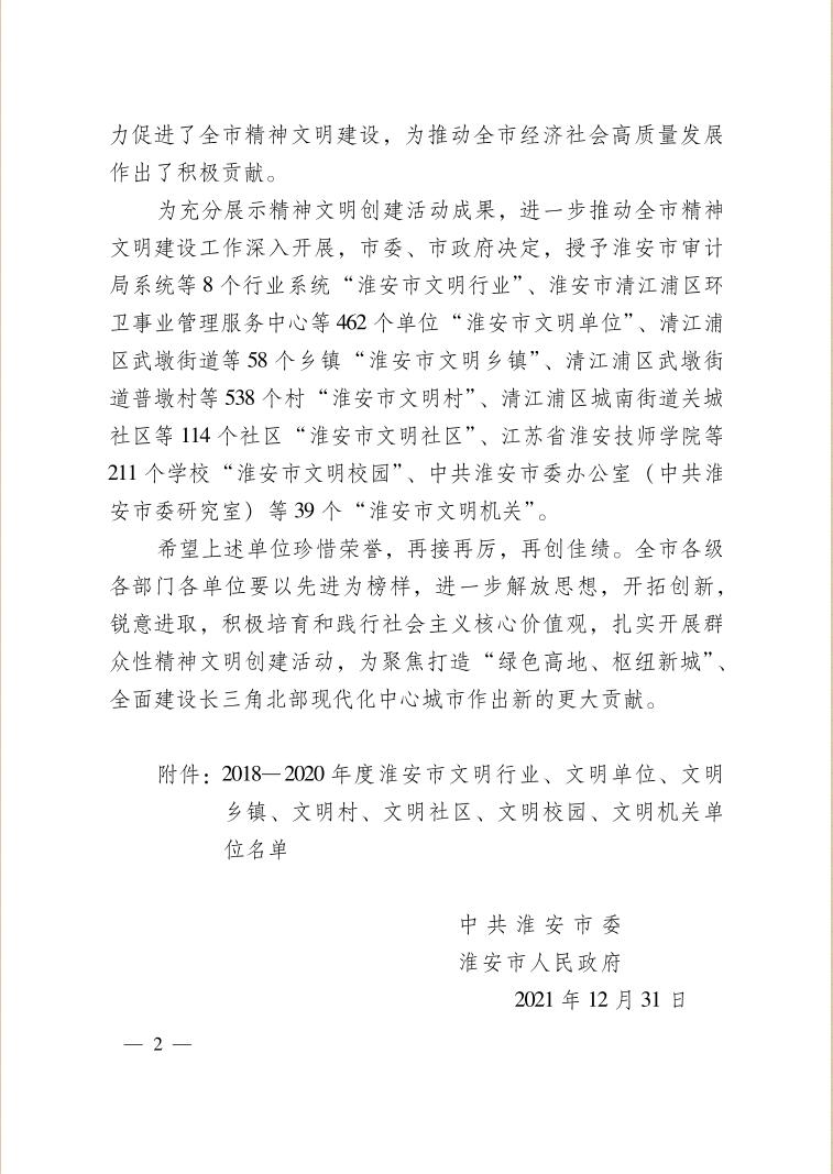 近日,中共淮安市委、淮安市人民政府发布《关于命名2018-2020年度淮安市文明行业、文明单位、文明乡镇、文明村、文明社区、文明校园、文明机关的通报》,乐竞获评2018-2020年度淮安市文明校园称号。