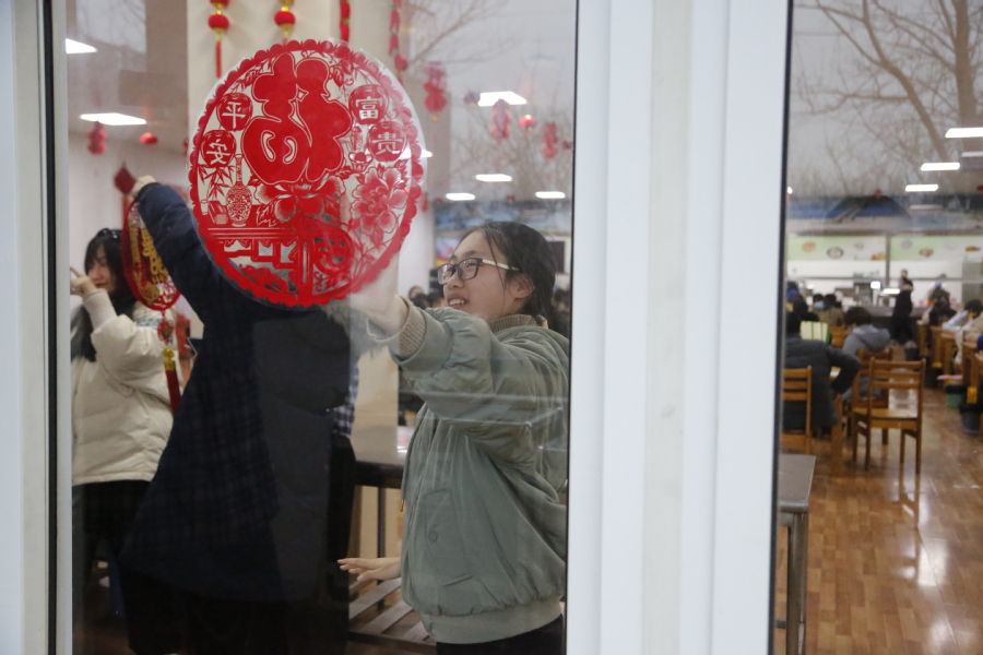 1月26日下午,乐竞100多名留校师生齐聚一堂,在传统的小年里领红包、贴“福”字、吃团圆饭……在感受浓浓年味的同时,更感受着远离家乡留淮过年的温暖。
