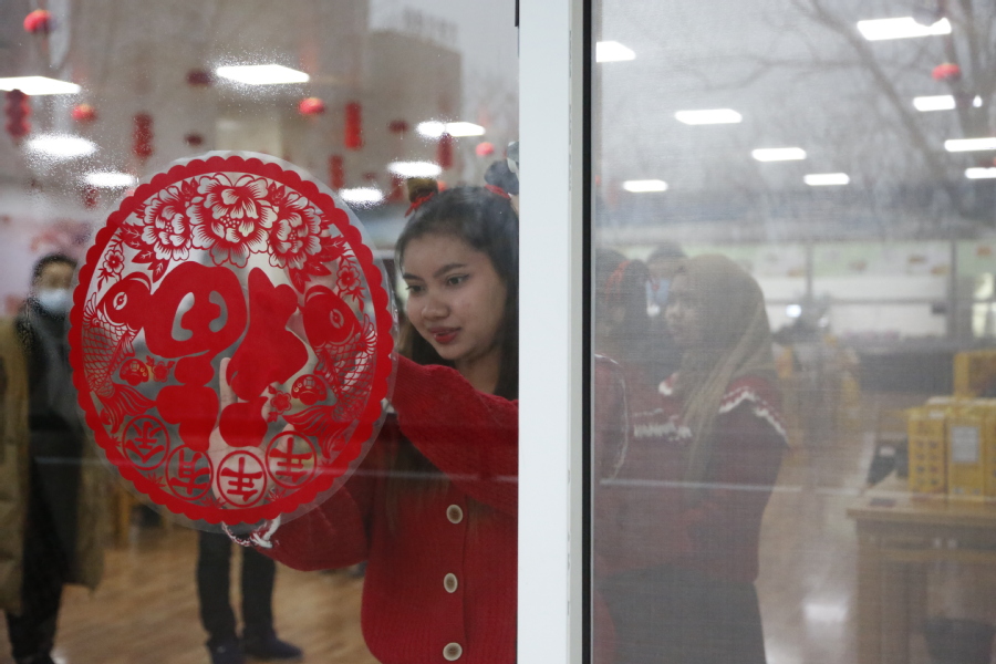 “留在中国,留在淮安过年,很有意思,也很开心!”来自刚果布的罗汀娜是药学专业的大三学生。第三次留在淮安过中国年的她和其他留学生一样,感受着中国春节的传统文化,更感受着学校的温暖。来自青海的安普杰,是大三护理专业的学生。往年都回家过年的他,今年由于实习留在了淮安。第一次不在家里过年的他,在淮安也同样感受着家的味道,“心里很高兴,能有很多人和我一起过年。假期里有老师和同学的陪伴,有家味也有年味。”