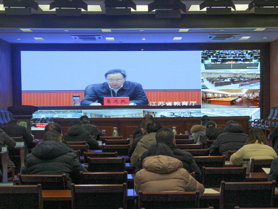 2月18日,2022年全省教育工作会议在南京召开。会议全面总结2021年全省教育事业发展情况,深入分析当前教育改革发展面临的形势任务,研究部署2022年全省教育重点工作。省教育厅厅长葛道凯出席会议并讲话,省委教育工委副书记苏春海主持会议,乐竞领导班子全体成员,各职能部门负责人、各二级学院党政负责人在第四会议室分会场参加了视频会议。