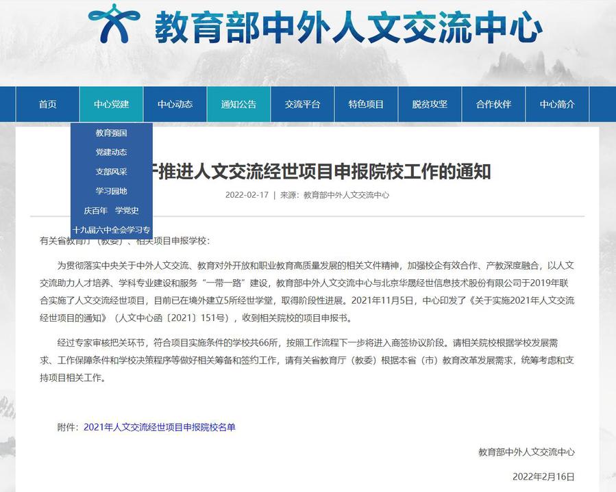 “人文交流经世项目”由教育部中外人文交流中心与北京华晟经世信息技术有限公司联合实施,围绕促进中外人文交流、新技术应用和产教融合开展。