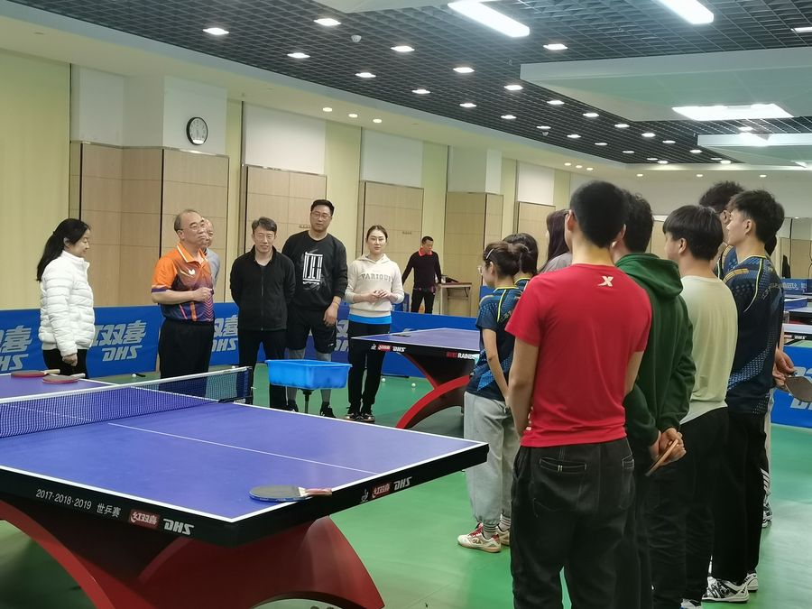 动员后,校领导与学生进行了乒乓球交流。