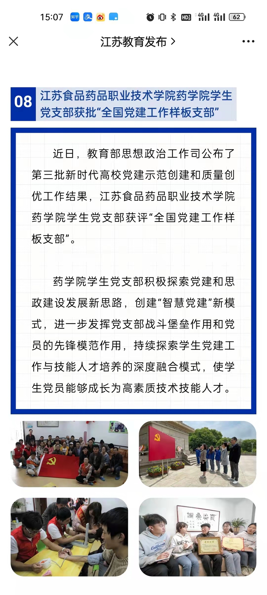 [微信·江苏教育] 乐竞药学院学生 党支部获批“全国党建工作样板支部”