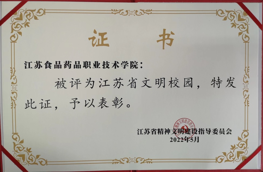 5月26日,省精神文明建设指导委员会发布了《关于命名2019-2021年度江苏省文明校园的决定》(苏文明委〔2022〕8号),乐竞被授予2019-2021年度江苏省文明校园称号。
