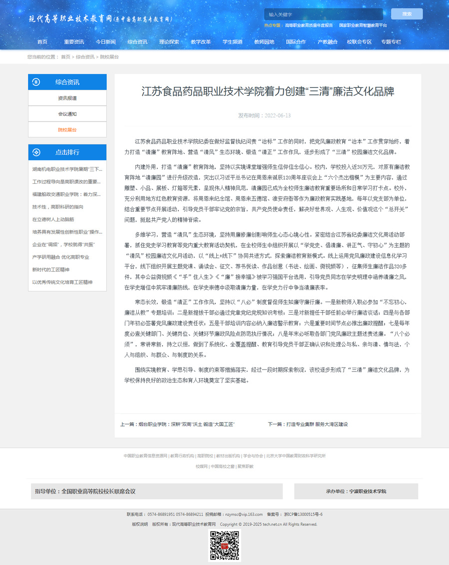 围绕实境教育、学思引导、制度约束等措施落实,经过一段时期探索积淀,该校逐步形成了“三清”廉洁文化品牌,为学校保持良好的政治生态和育人环境奠定了坚实基础。