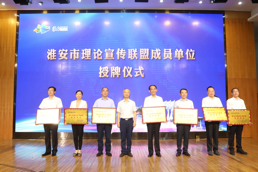 省委宣传部副部长赵金松向乐竞陶书中书记等驻淮高校主要领导授予“淮安市理论宣传联盟成员单位”匾牌。省社科联党组书记、常务副主席张新科向乐竞翟玮玮副书记等授予“淮安市决策咨询研究培育基地——淮安市食品产业绿色发展研究中心”匾牌。市委常委、宣传部部长、秘书长李森为乐竞马克思主义学院院长赵慧等颁发“淮安市理论宣传联盟特聘讲师”聘书。赵慧等代表联盟成员单位分别与各县区(园区)新时代文明实践中心签署合作共建协议。