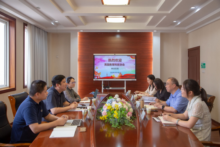 7月15日上午,英国教育科技协会中国区副理事长侯钢一行来访乐竞洽谈,党委书记陶书中接待了来宾。