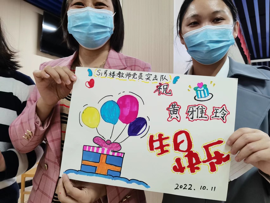 队员们按照陶书记、薛校长在看望突击队时提出的“舍小家奉献大家,将心比心,把学生当作自己的孩子”的指示要求,不仅仅把健康监测期间的服务管理当作是一项工作,同时对学生们倾注如同自己子女一般的关爱和关心。在得知制药221班黄雅玲同学即将过生日后,队员们决定给黄同学一个惊喜,大家分头定蛋糕、长寿面,组织部许金慧同志亲手绘制生日贺卡。当队员们带着贺卡、手捧蛋糕、唱着“所有的烦恼说拜拜,对所有的快乐说嗨嗨,亲爱的亲爱的生日快乐每一天都精彩”时,黄同学既感动又快乐,更多的是感受到了苏食院大家庭的温暖。当一名同学因生病呕吐时,队员们第一时间赶到宿舍进行安抚,联系医生前来诊看,民族学院的庄子如老师贴心地帮助学生重新铺好被褥,安顿生病的学生好好休息。吃饱吃好才能慰藉远途求学的同学们的肠胃,队员们详细记录下同学们的饮食需求:民族学院的同学需要5份清真餐,男生宿舍需要加餐,西北的同学想吃面食,某某同学身体不舒服晚上想吃白米粥和鸡蛋饼......每一件小事、每一餐小小的满足都能够让同学们更加快乐,对学校的情感更深一层,让校园真正成为同学们温暖的新家。