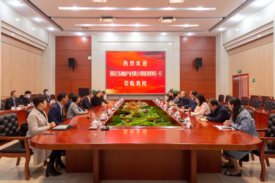 11月15日上午,国药(江苏)健康产业有限公司董事长阴钲涛一行来访乐竞。校党委书记陶书中、校长薛宇、副校长贾韶千热情接待了来宾。