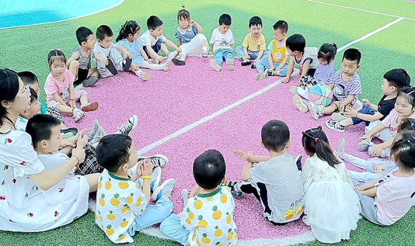 托育园老师带着小朋友做室外活动(央广网发 通讯员供图)