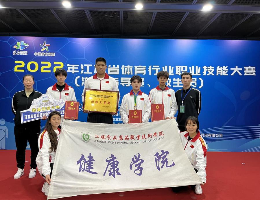乐竞参赛选手由健康学院六名同学组成。该项赛事分为高校组和职工组,共22支代表队。乐竞作为唯一职业院校与本科体育行业院校南京体育学院、江苏科技大学、常州大学等院校同台竞技。经过一个多月的集训备赛,参赛队员在学校领导的大力支持与鼓励下和指导老师的辛勤指点下,凭借过硬的专业能力与吃苦耐劳的螺丝钉精神,奋勇拼搏、赛出水平、赛出风格,为学校争得了荣誉。