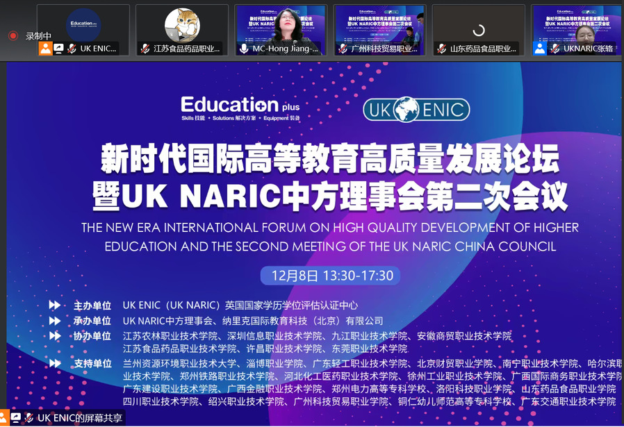 近日,由英国国家学历学位评估认证中心(UK NARIC)主办的“新时代国际高等教育高质量发展论坛暨UK NARIC中方理事会第二次会议”顺利召开。来自全国80所院校的近400位嘉宾参会。乐竞副校长贾韶千围绕“中国职业教育国际交流合作探索与实践”进行了主题发言,展示了乐竞国际交流与合作方面的优秀成果。