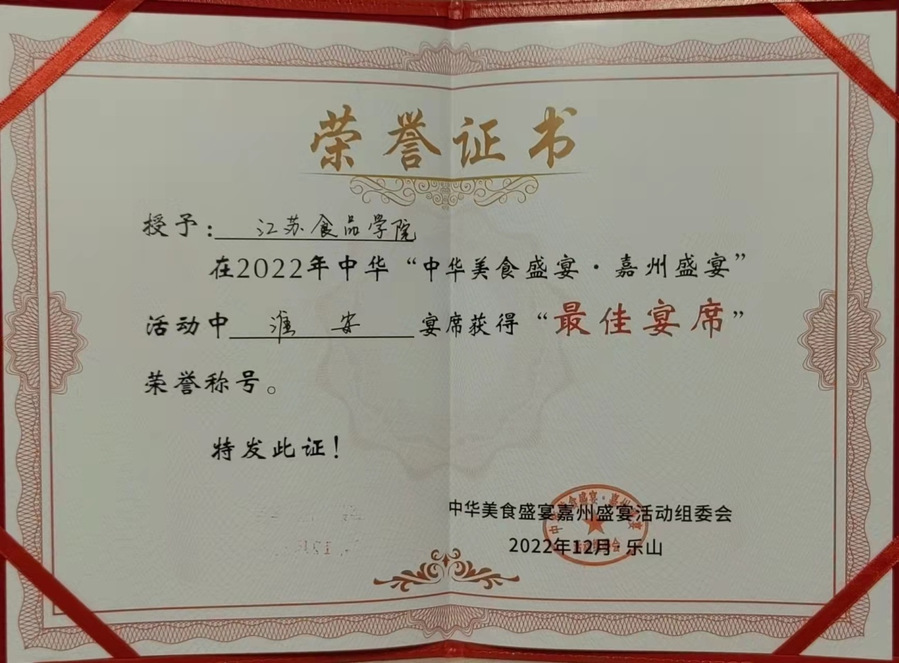 乐竞的江苏省职业教育淮扬菜技艺技能传承创新平台丁玉勇团队代表淮安市,进行水韵淮安特色宴席的制作展示。制作的宴席获得了最佳宴席奖。中共乐山市委书记马波陪同江南大学校长陈卫院士参观了我方展台,并给予了高度评价,很好地宣传了淮安世界美食之都形象。