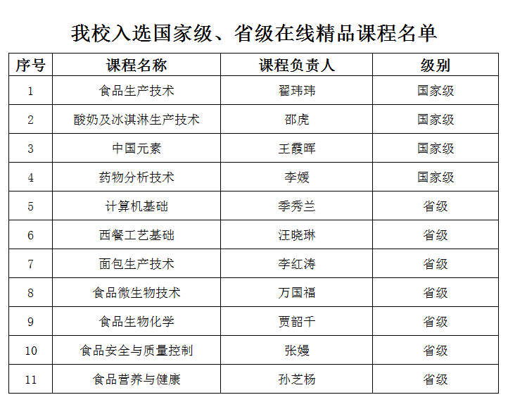 近日,在各省级教育行政部门和全国行业职业教育教学指导委员会、教育部职业院校教学(教育)指导委员会推荐的基础上,经专家评审,乐竞《酸奶及冰淇淋生产技术》《中国元素》《食品生产技术》《药物分析技术》4门课程被认定为2022年职业教育国家在线精品课程。本次江苏省共推荐110门在线课程参加新立项遴选,其中乐竞新推荐的2门课程成功获选,另2门课程顺利通过复核。