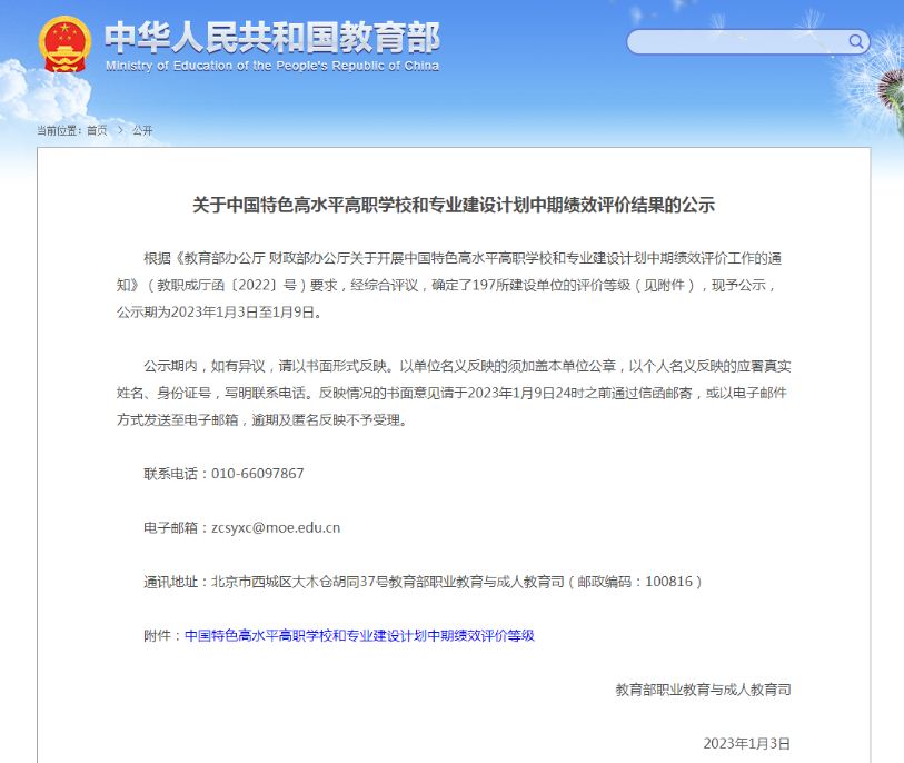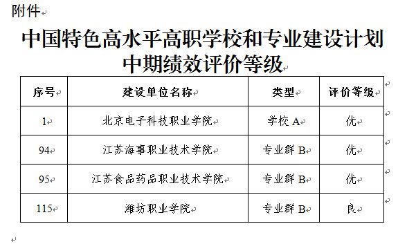 1月3日上午,教育部职业教育与成人教育司发布《关于中国特色高水平高职学校和专业建设计划中期绩效评价结果的公示》,根据《教育部办公厅财政部办公厅关于开展中国特色高水平高职学校和专业建设计划中期绩效评价工作的通知》(教职成厅函〔2022〕号)要求,经综合评议,确定了全国197所建设单位的评价等级,其中乐竞获评优秀。