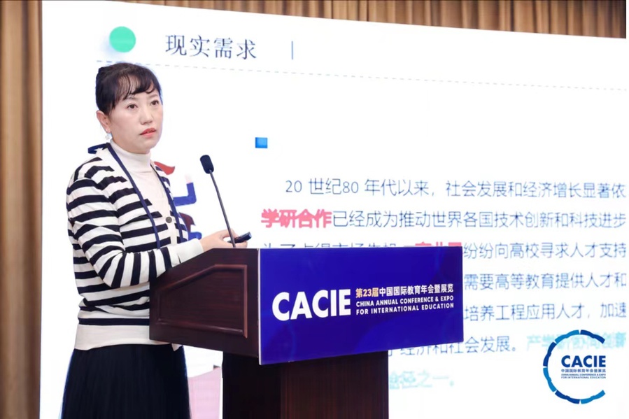 贾韶千做总结发言,他指出在世界百年变局加速演进、全球产业链供应链加快重塑的背景下,抓住人才培养、科技创新这个关键变量,深化国际产学研用合作是开放合作促共赢的创新举措。这次论坛为我们提供了新的交流机会,各位嘉宾的发言给我们高等教育的发展提供了非常丰富的信息,为增进合作与交流,更好地利用学校、企业与科研单位等教育资源,让人才将知识与实践有效结合提供了有益的建议和启发。