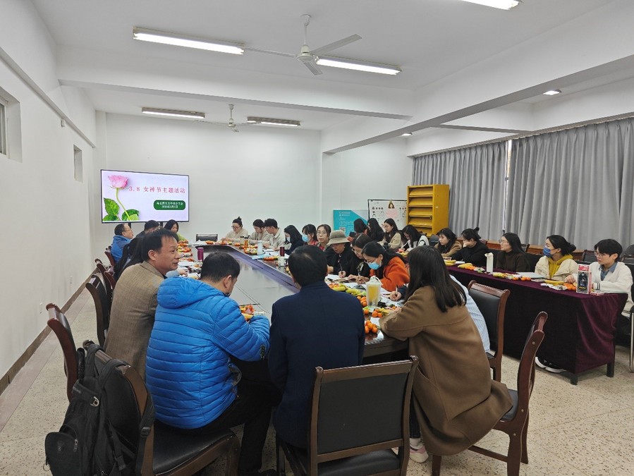 机电工程学院开展了“情暖‘三八’节,巾帼绽芳华”师生联谊会,陶珊老师作“她力量,温柔是你坚强也是你”主题分享。师生联系个人生活话感悟,把握当下,追逐梦想。