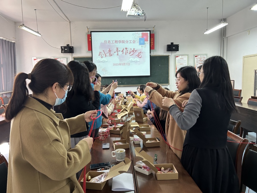 信息工程学院开展女教工创意手作沙龙活动,由设计专业教师和校外艺术体验馆人员共同为大家讲解设计的理念、制作的方法,教工们动手体验制作车载挂饰、香薰蜡片的过程。活动结合学院设计专业特点,使教工充分了解中国传统与现代工艺文化底蕴,在展现女性师生良好精神风貌的同时,也丰富了女性师生的业余生活、放松了心情,舒缓了压力,营造了团结和谐、积极向上的节日氛围。
