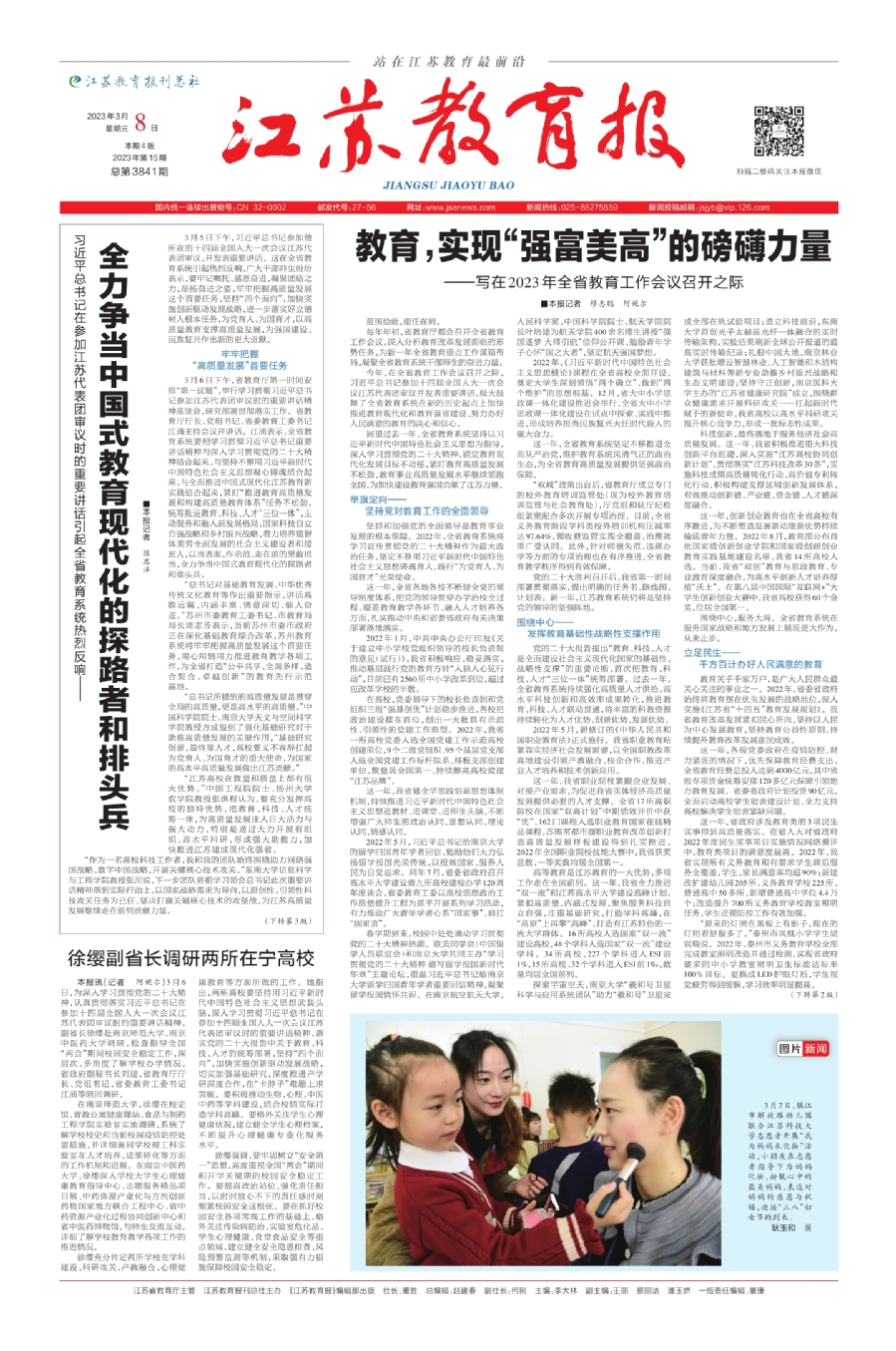 习近平总书记在参加江苏代表团审议时的重要讲话引起全省教育系统热烈反响——
