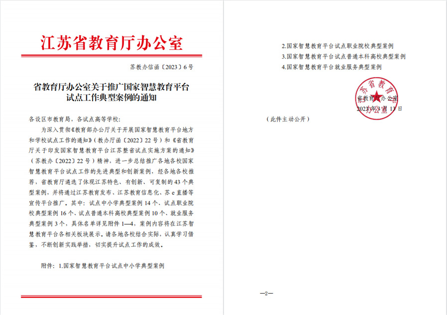 为进一步总结推广各地各校国家智慧教育平台试点工作的先进典型和创新案例,近日,省教育厅遴选了体现江苏特色、有创新、可复制的典型案例,其中包括试点职业院校典型案例16个,乐竞案例《依托国家精品在线开放课程,驱动人才培养质量提升》位列其中,这是乐竞继入选国家智慧教育平台江苏省试点学校,立项国家级、省级在线精品课程之后的教育教学数字化新荣誉。