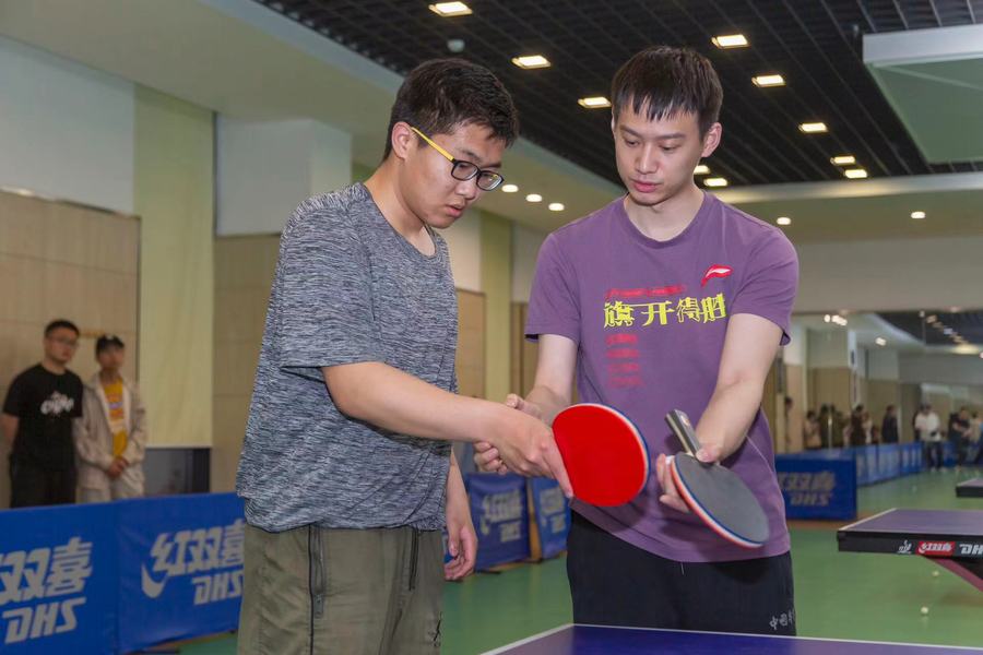 日前,原国家乒乓球队世界冠军周雨来到乐竞乒乓球训练基地,认真观看了校乒乓球队训练情况,根据队员的打法特点给予了专业点评和技术指导。