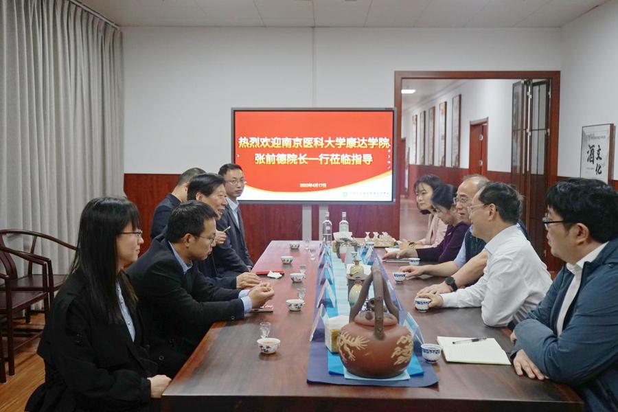 4月17日,南京医科大学康达学院院长张前德、党委副书记王磊等一行来乐竞交流指导。乐竞党委书记陶书中、校长薛宇、党委副书记翟玮玮在酒文化与烹饪艺术研究院热情接待了来访客人。