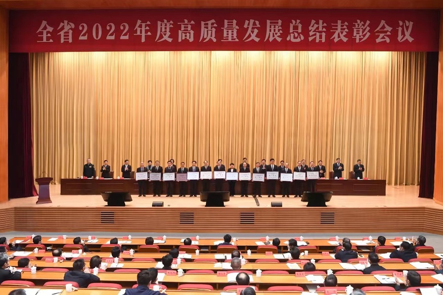 4月26日,省委、省政府召开全省2022年度高质量发展总结表彰会议。会议通报了2022年度高质量发展综合考核结果,省委书记信长星,省委副书记、省长许昆林等省委常委为先进单位颁发了奖牌。根据考核结果,乐竞荣获省属高校综合考核争先进位奖,党委书记陶书中代表学校接受了颁奖。