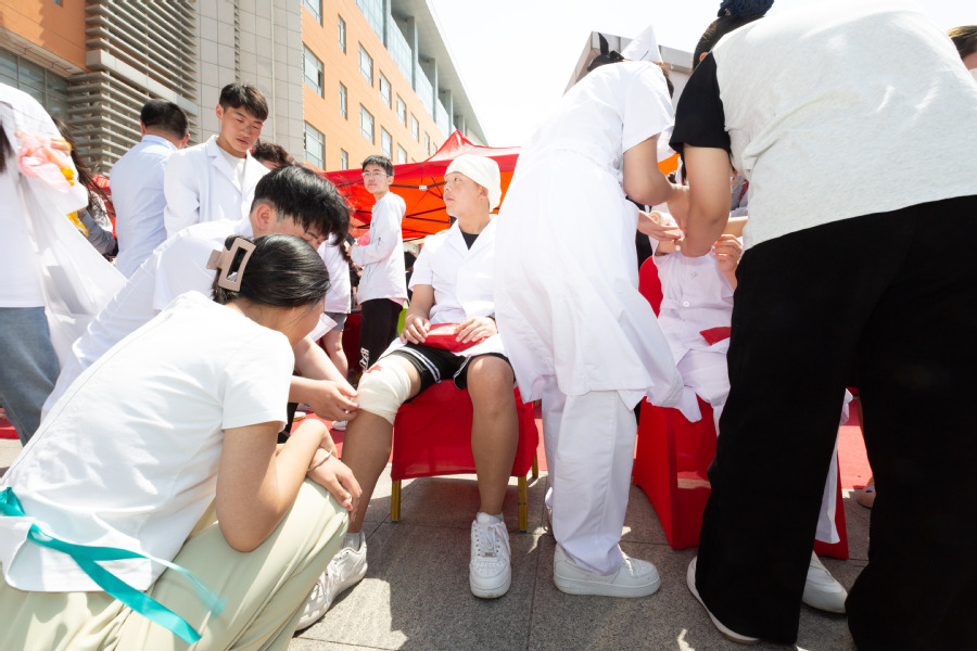 在本次启动仪式上,各二级院部结合自身专业特点,以专业特色作品或专业特色活动为主要内容进行重点展示,包括食品学院的校园文创冰激凌、药学院的中药扎染围巾、制药工程学院的药妆制作、健康医学院的特色养生中药材、护理学院的止血包扎演示、酒店学院的艺术插花、智能制造学院的双足步行机器人、数字经济学院的非遗文化推广专场直播、人工智能学院的VR体验、民族学院的板绘和手绘、国际教育学院的茶具与茶点等。
