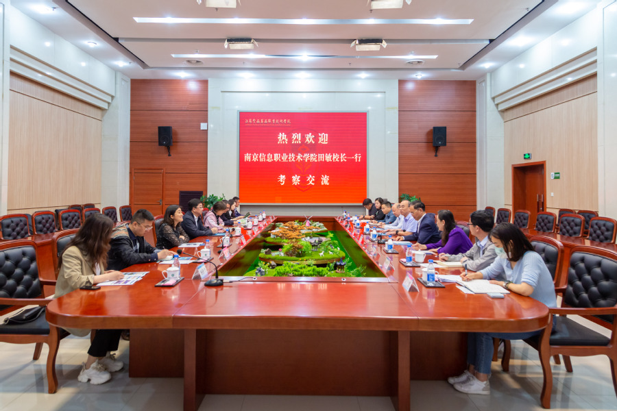 6月5日下午,南京信息职业技术学院校长田敏、副校长陆群一行来访乐竞,校党委书记陶书中、校长薛宇、副校长安进热情接待了来宾。