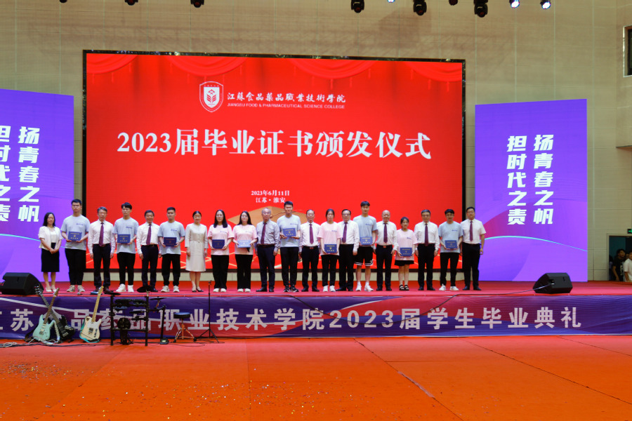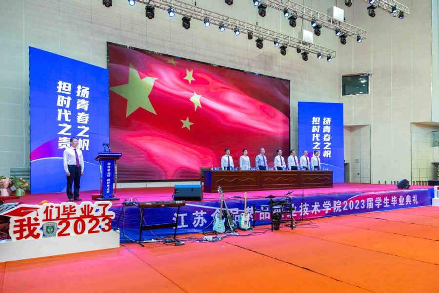 在庄严的国歌声中,2023届毕业典礼拉开了序幕。党委副书记翟玮玮宣读《乐竞关于准予2023届全日制普通专科学生毕业的决定》《乐竞关于表彰2023届优秀毕业生的决定》和《乐竞关于表彰2023年技能标兵的决定》。