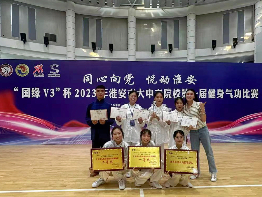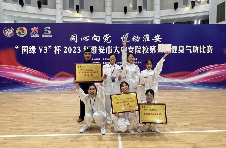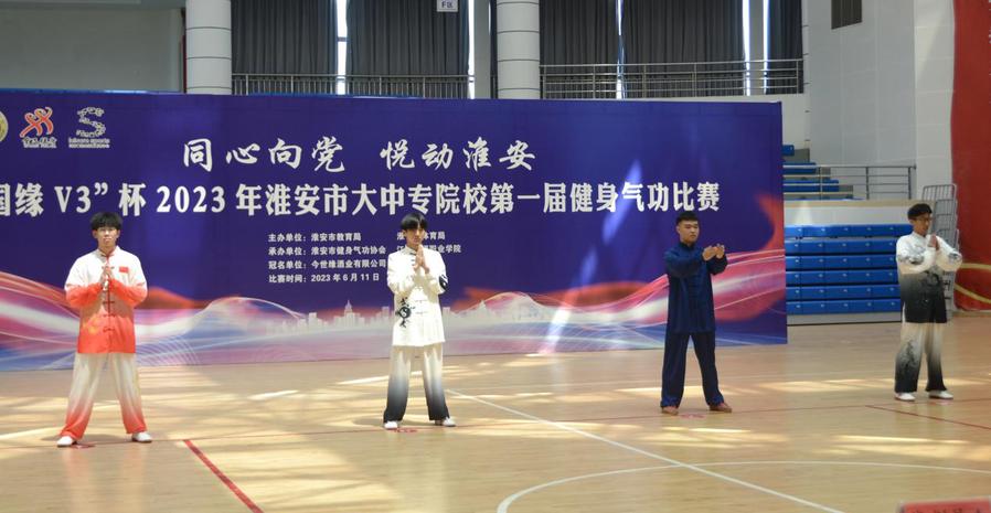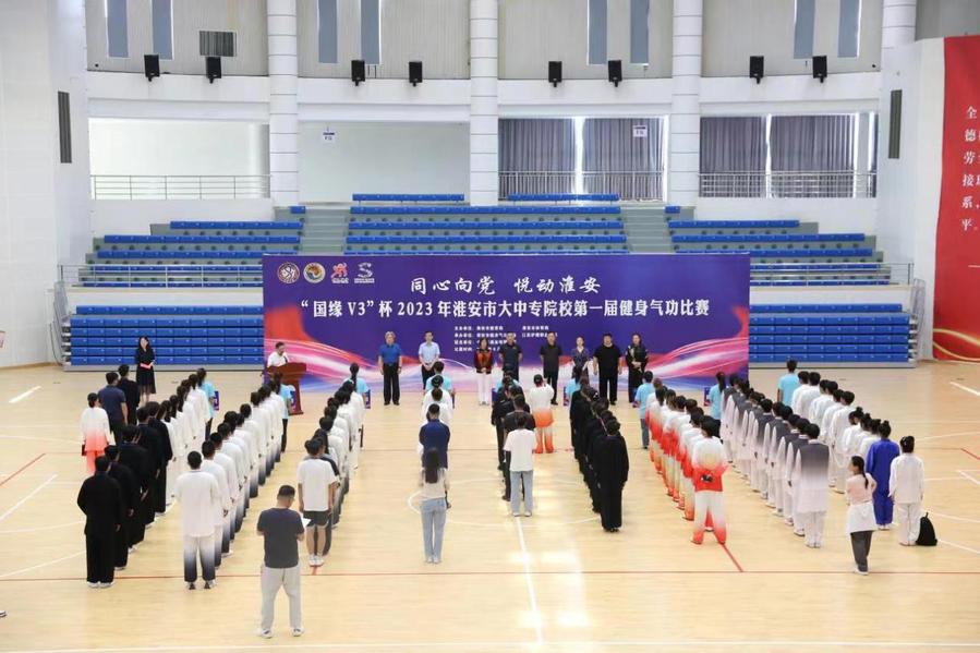 6月11日,“同心向党 悦动淮安”国缘V3杯2023年淮安市大中专院校第一届健身气功比赛在江苏护理职业学院举行。