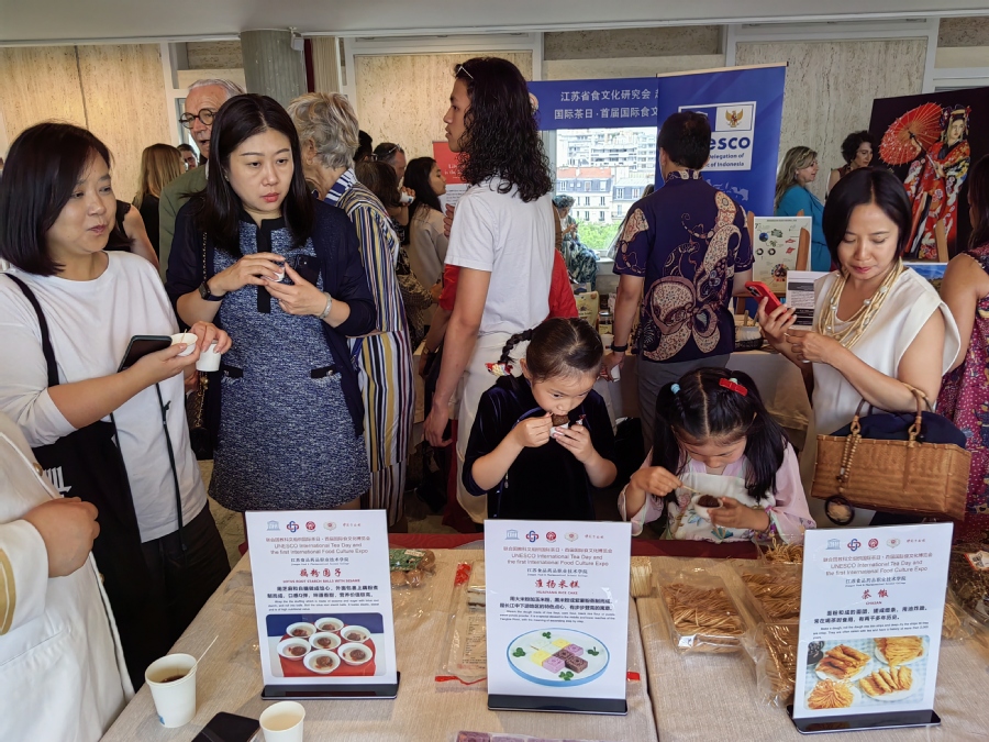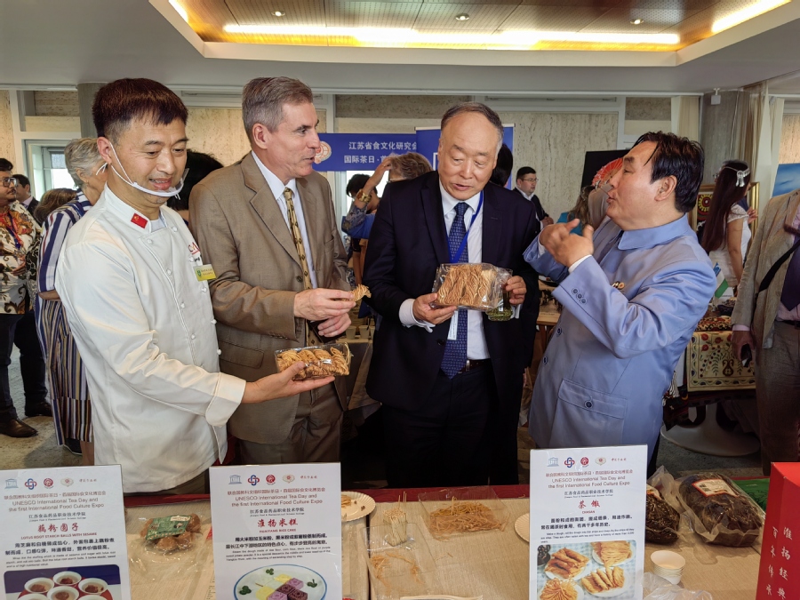 6月29日,在联合国教科文组织总部的博览会现场,丁玉勇教授再次展示了茶馓、淮扬米糕、藕粉圆子等淮扬名点,吸引了中国驻联合国教科文组织大使杨进、联合国教科文组织直属协会主席玛赫达、法中文化艺术交流中心主席佟爱明,以及印度尼西亚、哈萨克斯坦、土耳其、斯里兰卡等十多个国家驻联合国教科文组织代表和上百个国家200多名观众参观和品尝。