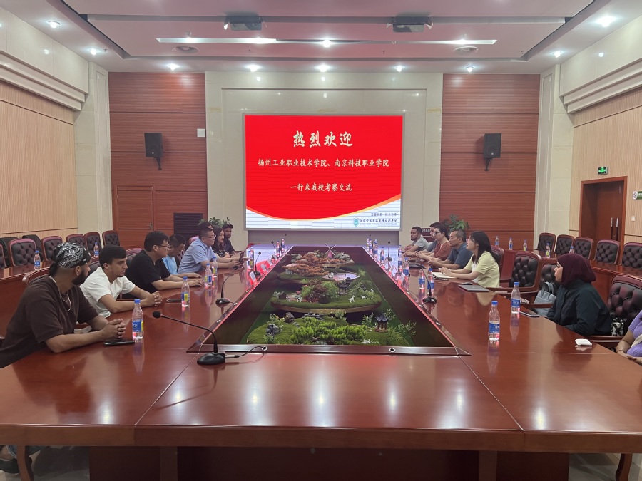 7月24日下午,扬州工业职业技术学院海外教育学院院长李经宁、南京科技职业学院外事办秘书徐九春等带领留学生一行15人来乐竞进行交流学习。乐竞国际教育学院院长郑洪成、国际与港澳台合作交流处处长王婧妍等接待了来宾。